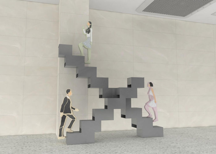 일부 작품에서 작가는 계단을 이용하여 인물들의 활동 범위를 넓혀주었는데, 이때의 계단은 위·아래가 구분되는 상징적 표현이다. 이는 인간의 욕망을 이루기 위한 수단으로써의 이중적 의미를 내포하며, 매일 계단을 오르내리며 출퇴근하는 현대인의 반복적인 일상을 ‘도시적 라이프스타일’의 탄생으로 구현한 것이다. 계단 역시 도시적 상징으로 이를 통해 어딘가를 오르는 행위는 나의 길을 갈 수 있다는 용기, 그리고 묵묵히 앞으로 나아갈 수 있는 끈기를 필요로 한다. 원하는 지점으로 도달하기까지의 여러 과정들을 자신만의 방식으로 즐기며 대하는 긍정적인 태도는 어쩌면 현시대의 가장 필요한 요소일 것이라고 작가는 이야기한다.